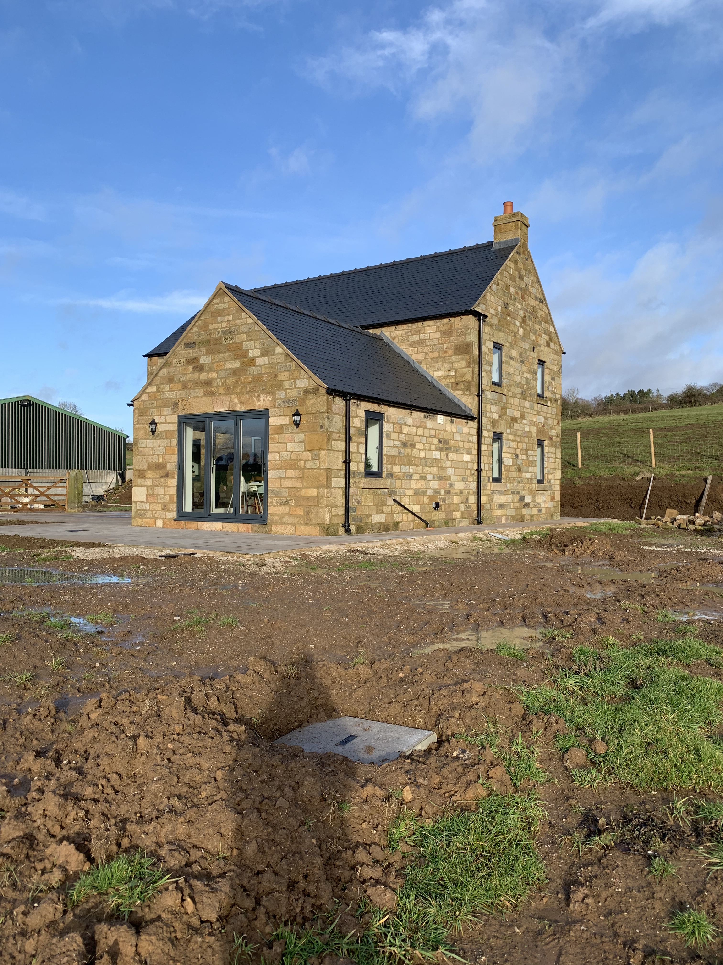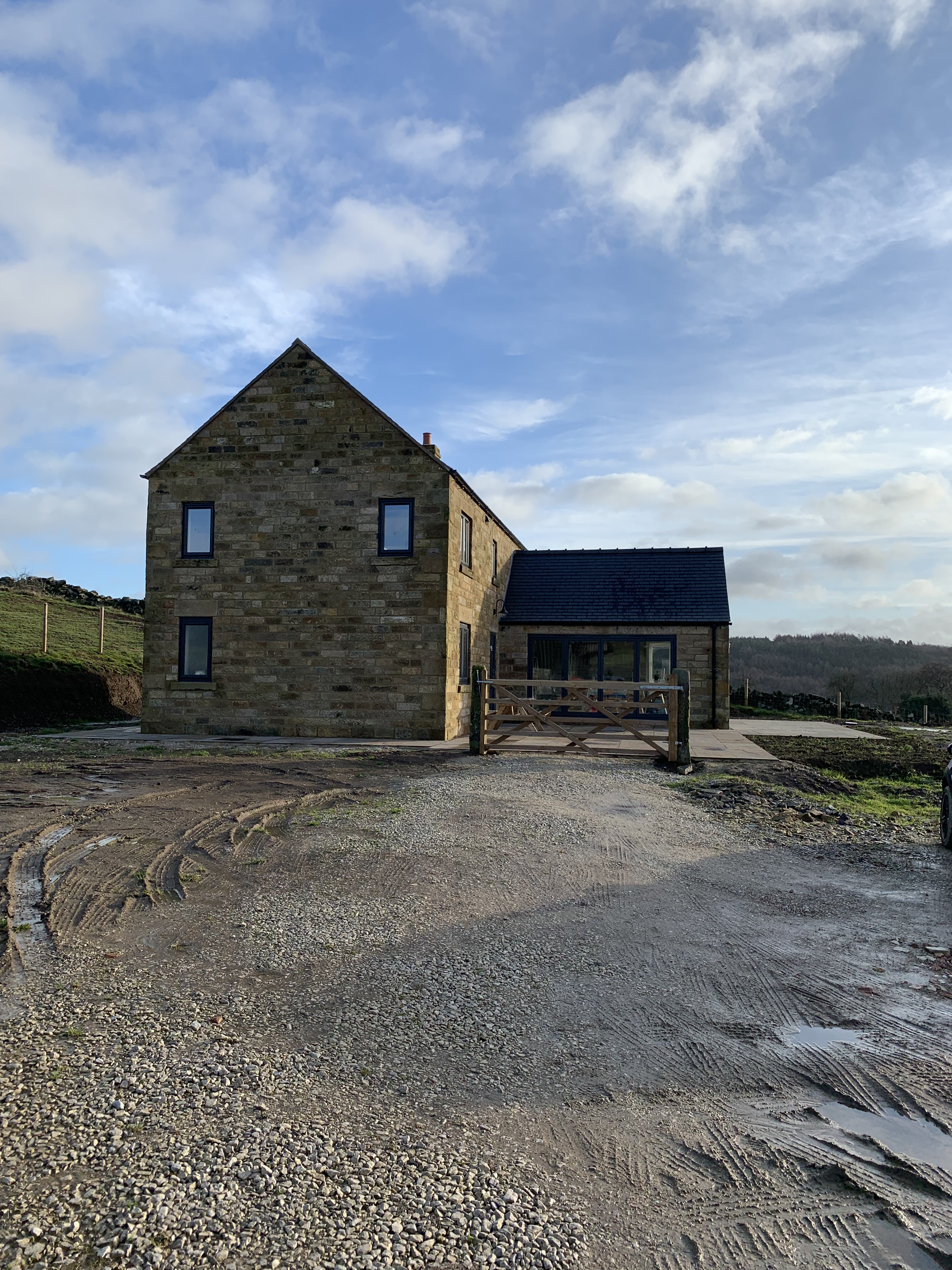 This client had struggled for some time to obtain permission for an agricultural worker’s dwelling on his land. We were able to negotiate with the planning officer to secure approval for the dwelling in the officer’s preferred location. Then through a further application (working alongside a planning consultant) we were able to demonstrate that the dwelling was similarly appropriate in the client’s preferred location. As you can see this position provides superb views over the Derbyshire Dales countryside. Built in stone with a slate roof and nestled into the sloping land the farmhouse is simple yet quite striking..